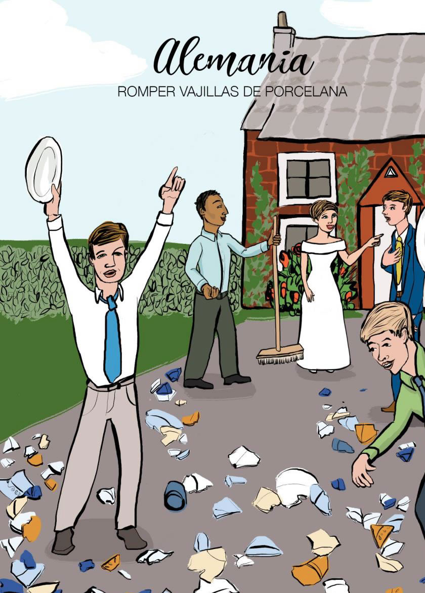 Este acto se denomina Polterabend, es una fiesta que consiste en romper vajillas de porcelana el dia antes de la boda para traer buena suerte a los novios